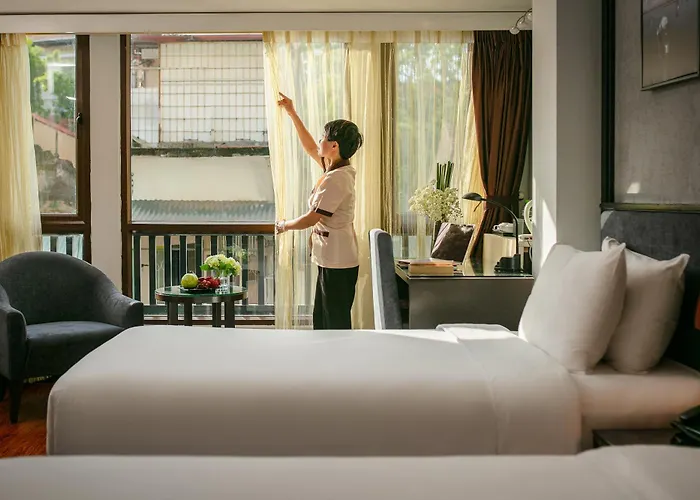 Hanoi La Palm Premier Hotel & Spa leży w centrum starej dzielnicy Hoan Kiem oraz w 28 minutach jazdy od lotniska Hanoi Noi Bai. Ten hotel oferuje 43 pokoje z widokiem na miasto.